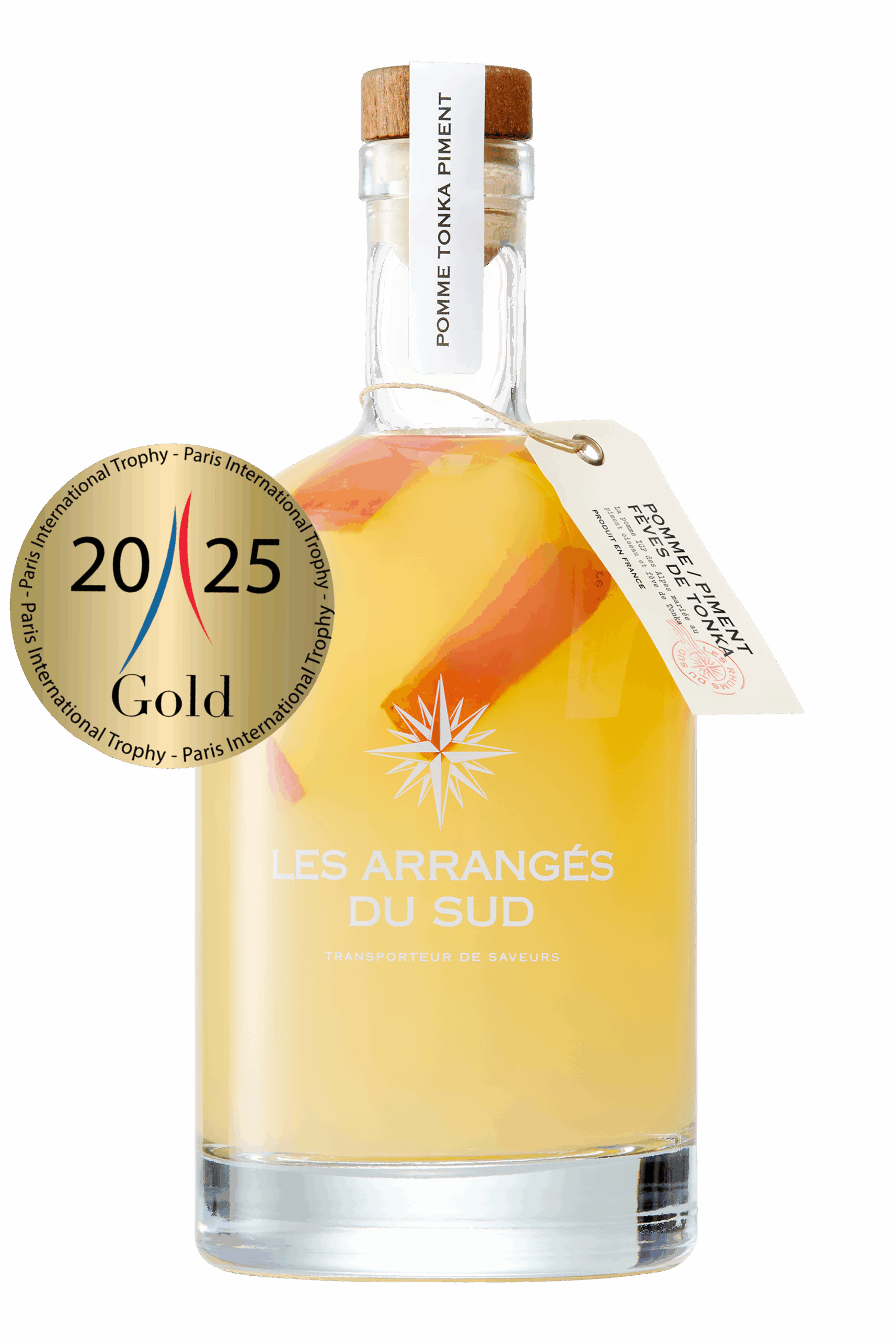 Composé de pomme IGP cultivées dans les alpes de Hautes Provence et mariées aux notes pâtissières de la fève de Tonka, relevées par le piment oiseau, ce rhum arrangé est une recette gourmande qui a du caractère !