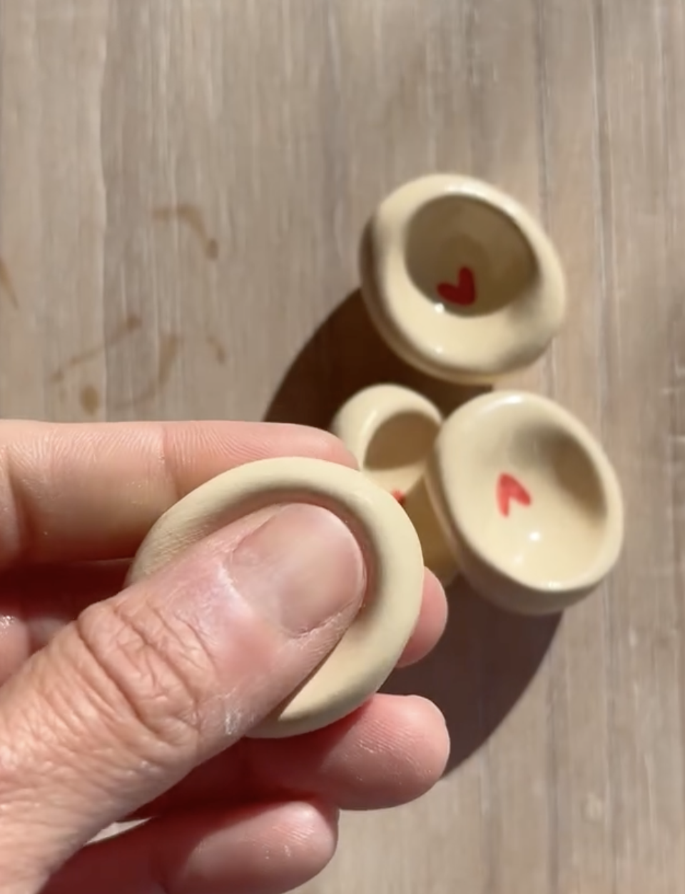 Elles sont ici beige avec un petit coeur dessiné au milieu.