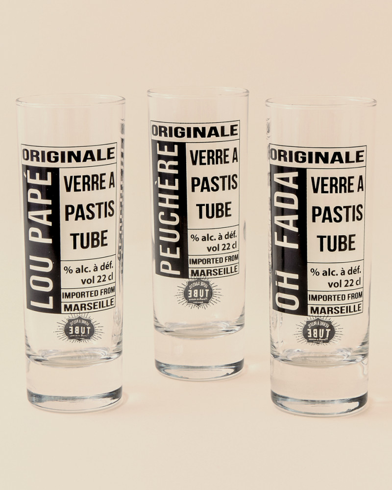 Parce que certains le préfère en tube plutôt qu’en ballon, Marseille en vacances signe une série de trois verres à pastis à l’identité bien trempée. Sérigraphiés avec nos expressions locales incontournables : LOU PAPÉ, PEUCHÈRE et OH FADA !