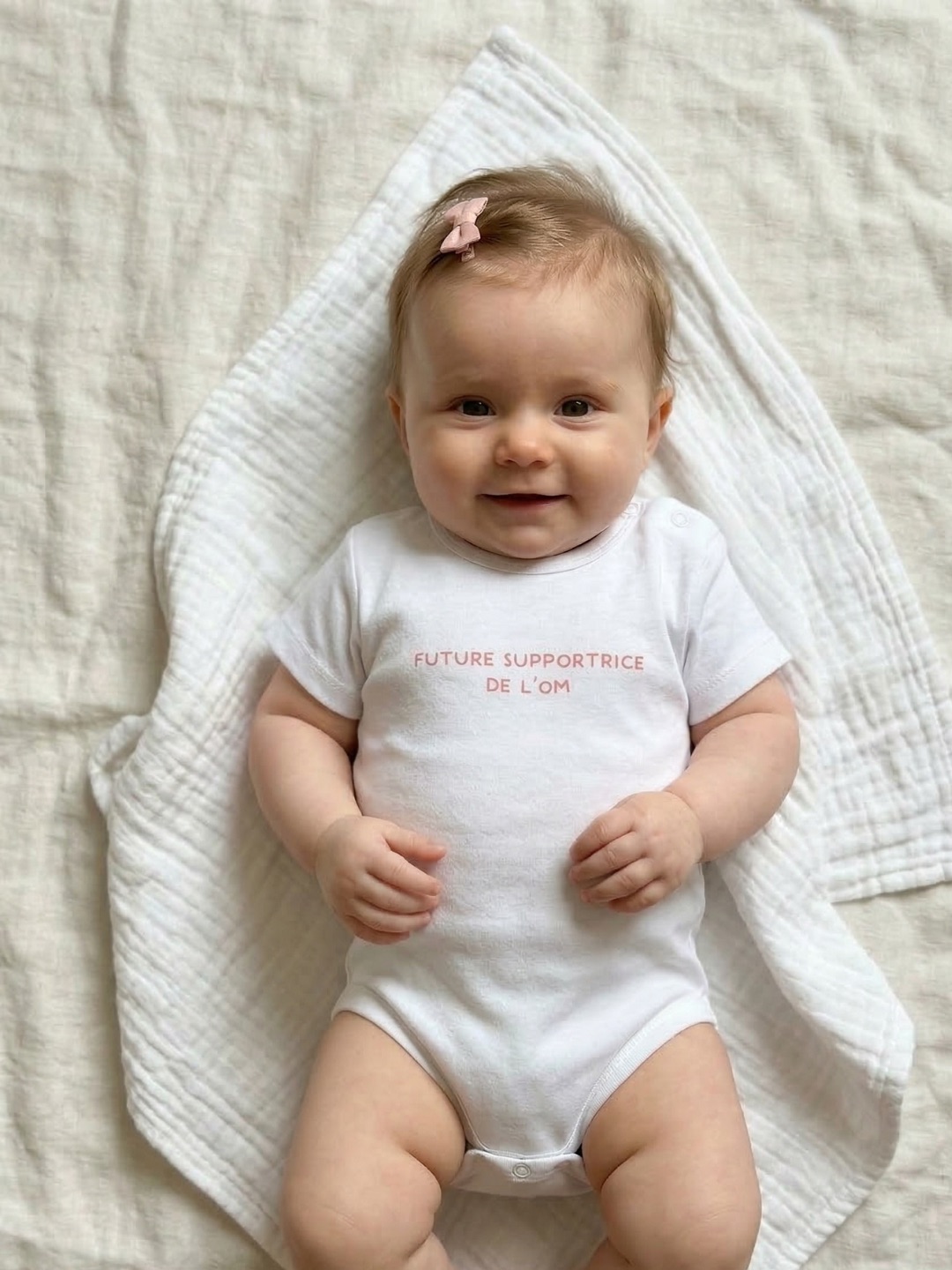 Avec son message amusant « Future supportrice de l’OM », ce body est parfait pour les familles passionnées de football et pour offrir un cadeau original pour bébé.