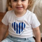 Apportez une touche de style marin au dressing de votre enfant avec ce t-shirt blanc signé Breizh Club. Son motif cœur à rayures bleu marine, inspiré de la marinière, associé à l’inscription “Cool Kid”, en fait une pièce à la fois tendance et intemporelle.