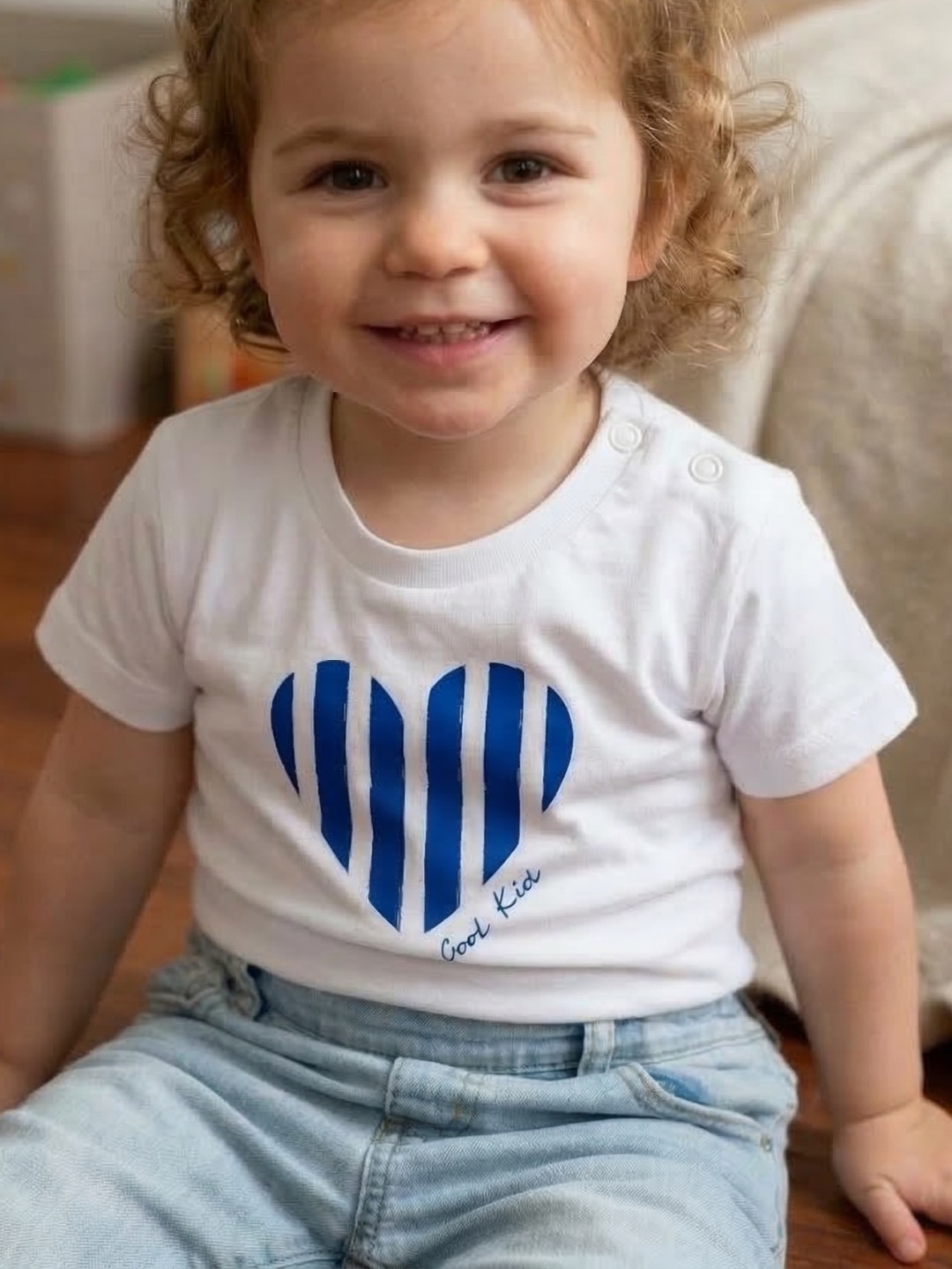 T-shirt enfant blanc cœur marinière “Cool Kid” – Breizh Club